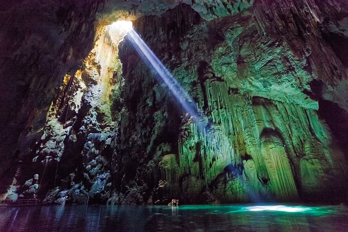 Истражувајте ја Лагоа Азул, пештерата со сино езеро прекршено преку варовник и магнезиум.