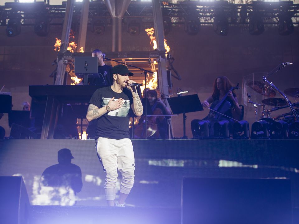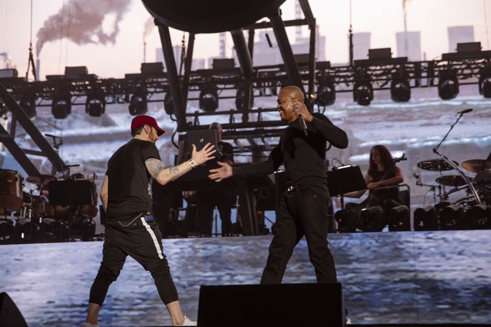 Настапот на Eminem на Coachella Викенд 1 &2 вклучуваше и настапи со гости,некои од нив беа д-р Dre, 50 Cent, Skylar Gray и Bebe Rexh