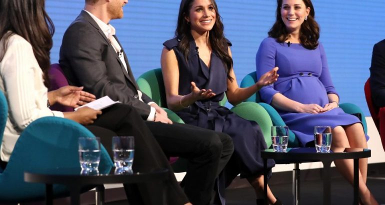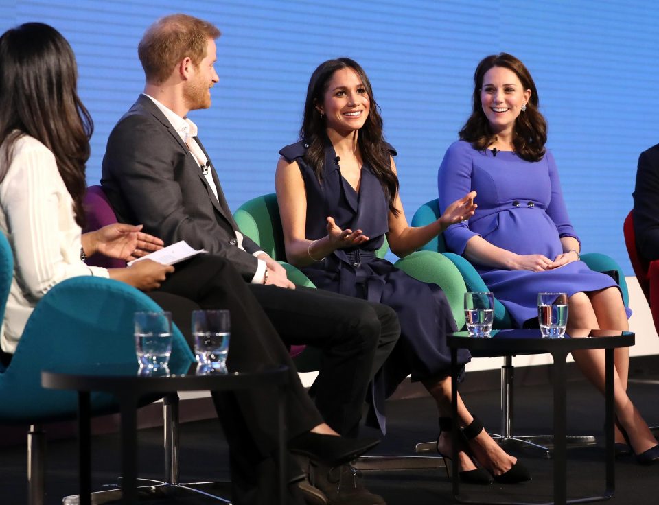 Принцот Хари со неговата сопруга Кејт,и неговиот брат Хари со вереницата Меган,заедно на форум во Лондон.
