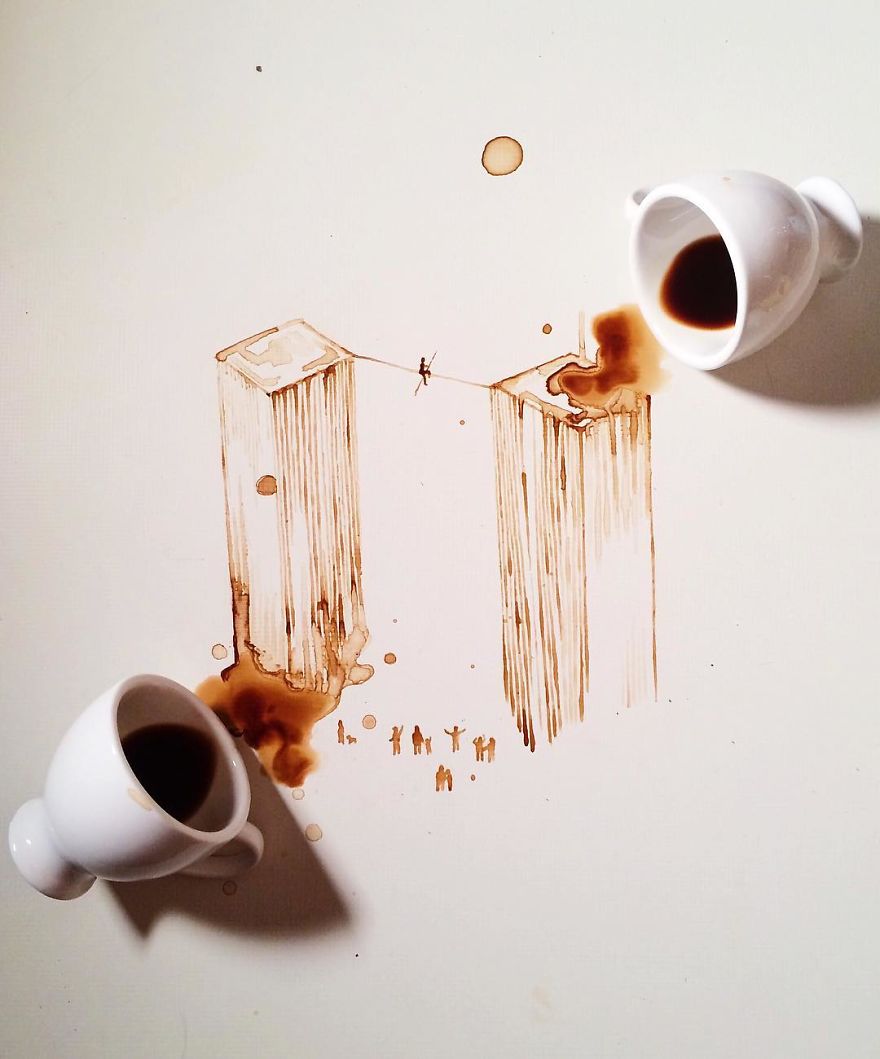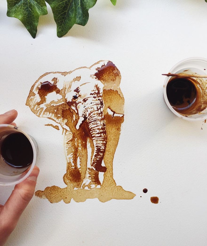 Младата Италијанка Џулија Бернардели, своите уметнички дела ги прави со користење на флека од каф или чај.